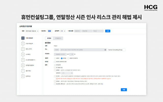 휴먼컨설팅그룹(대표 박재현, 이하 HCG)은 연말정산 시즌을 앞두고 인사팀이 직면하는 리스크 관리의 중요성을 강조, HR 시스템 관점에서의 대응 기준을 21일 제시했다.