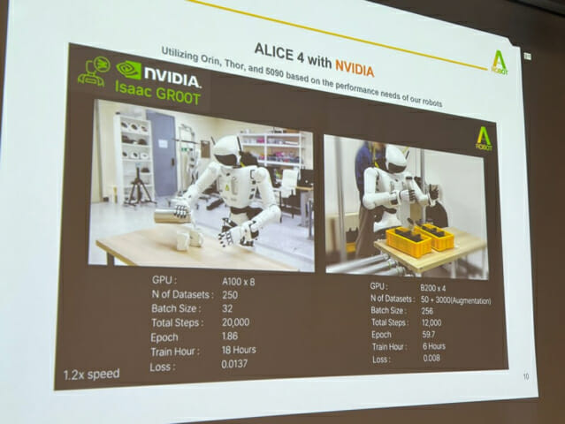 에이로봇은 엔비디아 그루트(GR00T) 모델과 젯슨 플랫폼을 활용하면서 자체 데이터 증강 소프트웨어로 그래픽처리장치(GPU) 비용을 절감하고 있다.