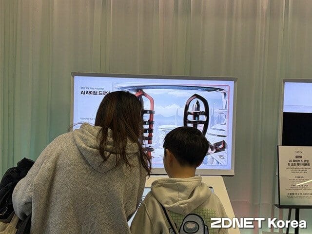 마지막 ‘이음의 여정’은 KT의 미래를 소개하는 공간으로, 3~4개월마다 콘텐츠가 변경되는 팝업 형태로 구성된다. 현재는 KT의 AI 기술을 만날 수 있는 ‘AI 라이브 드로잉존’이 마련됐다. AI로 완성한 작품을 에코백으로 제작해 굿즈로 만들 수 있다.