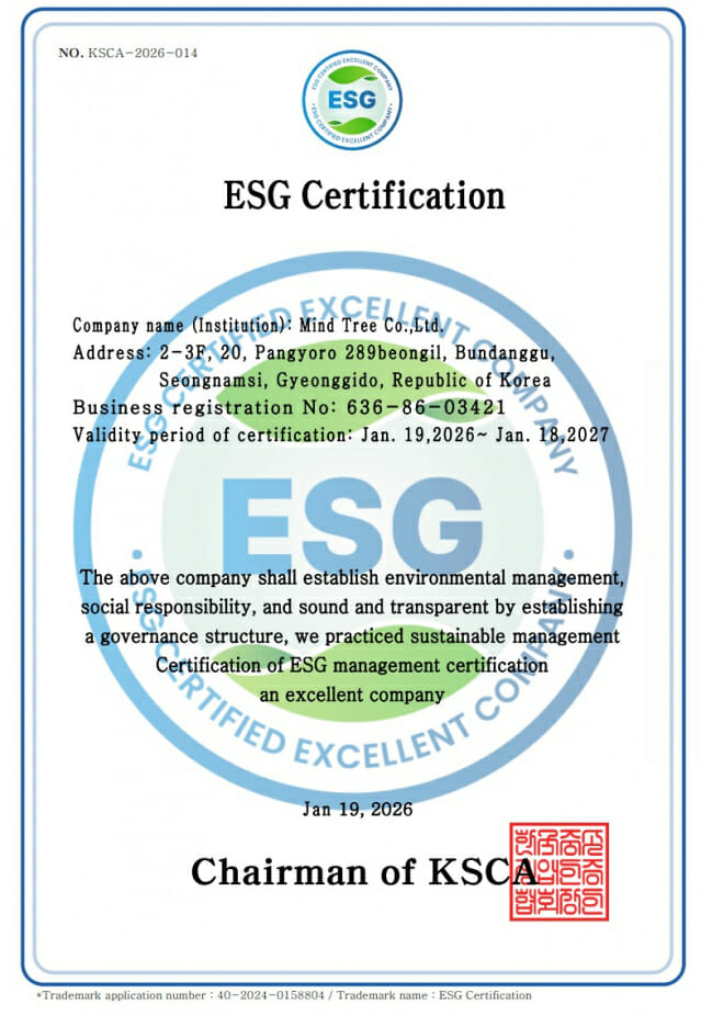 ◆마인드트리, 한국중소기업인증협회 ESG 인증 획득