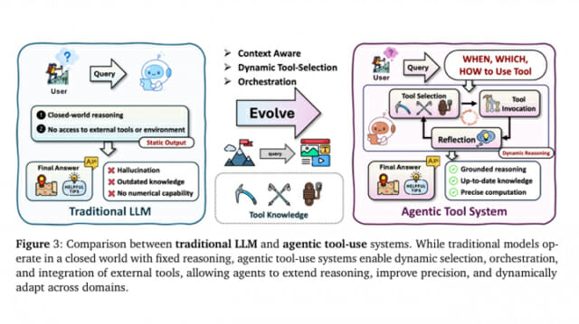 이런 AI 기술은 이미 여러 분야에서 실제로 쓰이고 있다. 수학 문제 풀이, 프로그래밍, 과학 연구, 로봇, 의료, 인터넷 검색 등 다양한 영역에서 활약 중이다. 과학 분야의 켐크로우(ChemCrow)는 여러 화학 도구를 자동으로 연결해서 화학 물질 합성 과정을 스스로 진행한다. 켐매트에이전트(CheMatAgent)는 100개가 넘는 화학 및 재료 관련 도구를 다루면서, 어떤 도구를 선택하고 어떻게 사용할지를 학습한다.