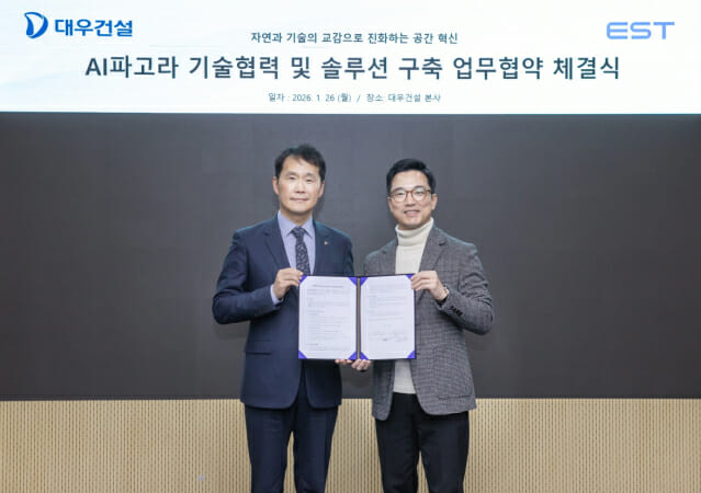 이스트소프트가 대우건설과 아파트 단지 내 휴게시설에 실시간 대화형 AI 휴먼 서비스를 적용하기 위한 업무협약(MOU)을 체결했다.