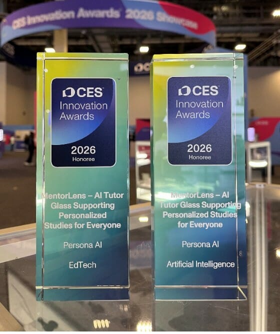 28일 회사에 따르면, 페르소나AI는 작년에 이어 미국 시각 6~9일 열린 'CES 2026'에서도 인터넷과 GPU 없이 작동하는 '생성형 엣지(Edge) AI' 기술로 존재감을 전세계에 확인시켰다. 특히 이 기술을 적용해 언제 어디서든 개인 맞춤형 학습 경험을 제공하는 '멘토렌즈'와 'AI 튜터 스마트 글래스'가 각각 AI 인텔리전스 및 에듀테크(EdTech) 분야에서 혁신상을 수상, 'CES 2026'에서 2개 혁신상을 배출한 한국 기업이 됐다.