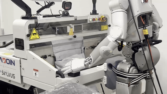 현장에서 가장 인상 깊었던 지점은 이 공정이 단순히 넣고 끝이 아니라는 점이다. 설비가 요구하는 순서와 타이밍이 맞아야 정상적으로 마감된다. 장비 버튼은 양쪽을 동시에 눌러야 작동한다. 안전을 위해 한쪽만 누르면 0.5초 차이로도 에러가 발생한다. 사람에게는 익숙한 동작이지만, 로봇에게는 마지막 단계가 오히려 높은 장벽이 된다. 물건을 집어 넣는 동작만큼이나 설비와 호흡을 맞추는 조작이 중요해지는 순간이다.
