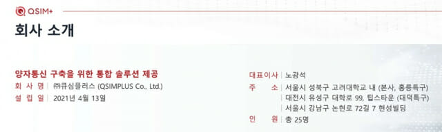 큐심플러스는 양자 정보기술과 양자통신(보안)에 특화된 양자 기업이다. 허준 고려대학교 교수(CSO)와 신유철 삼성전자 출신 최고기술책임자(CTO), 고려대학교 양자ITRC센터에서 연구교수를 하던 노 대표 등 3인이 의기투합해 창업했다.