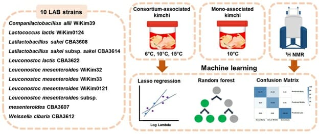이번에 연구팀이 구축한 모델은 유산균을 인위적으로 접종해 발효를 진행함으로써, 미생물 조성 변화와 발효 특성을 정밀하게 분석할 수 있다. 유산균 10종을 동일한 비율로 혼합하거나 단일 접종한 무균 김치를 6·10·15도조건에서 발효시키고, 온도와 유산균 종류에 따른 발효 특성을 체계적으로 비교·분석했다.