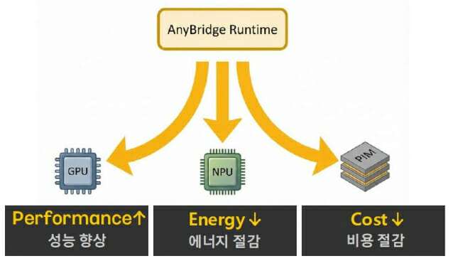 GPU와 NPU(AI 계산에 특화된 반도체), PIM(메모리 안에서 AI 연산을 처리하는 차세대 반도체) 등 다양한 AI 가속기를 선택적으로 사용, 효율과 전력·비용 세마리 토끼를 한 방에 잡을 수 있는 차세대 AI 인프라 소프트웨어가 개발됐다.