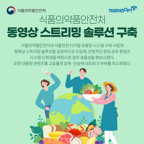 티젠소프트가 식품의약품안전처에 동영상 등록 변환 및 스트리밍 솔루션(TG 1st Movie)을 구축했다. 이를 통해 식품안전 디지털 유통망 시스템 내 콘텐츠 제작·배포 플랫폼을 완성했다.