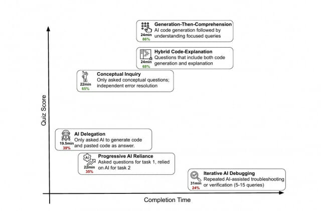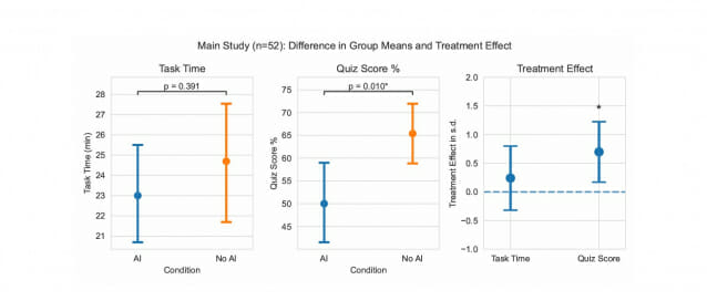 연구의 한계도 있다. 실험 시간이 1시간에 불과했고, 실제 일터가 아닌 통제된 환경에서 진행됐다는 점이다. 또한 대화형 AI 도우미를 사용했는데, 최근 나온 자동으로 코딩하는 AI 도구는 사람이 더 적게 참여하므로 배우는 효과가 더 나쁠 수 있다고 연구진은 지적했다.