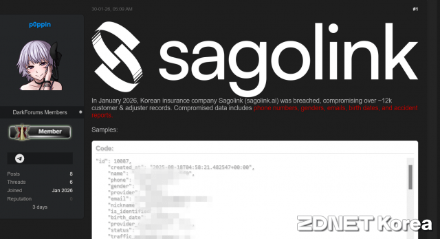 3일 본지 취재를 종합하면 불법 해킹 포럼 '다크포럼스(Darkforums)'에서 활동하는 '팝핀(p0ppin)'이라는 해커는 지난달 26일 1만2000건의 고객 및 관리자 데이터를 탈취했다는 게시글을 업로드했다.