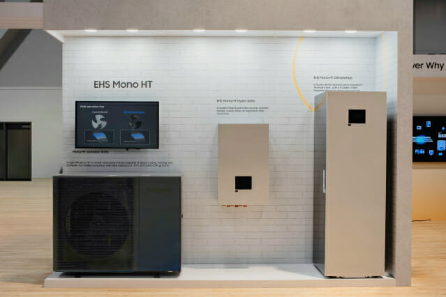 주요 전시 제품은 ▲북미에서 많이 사용하는 가정용 유니터리(Unitary)에 인버터 기술을 적용한 '하이렉스(Hylex) R454B' 실외기 ▲다양한 기후 환경에서 고효율 난방·급탕을 제공하는 히트펌프 방식의 가정용 EHS 제품인 '모노 R32(Mono R32)' 라인업 ▲AI 기반으로 주변 환경을 학습해 최적화된 솔루션을 제공하는 대용량 시스템에어컨 'DVM S2+' ▲비스포크 AI 무풍 에어컨 등이다.