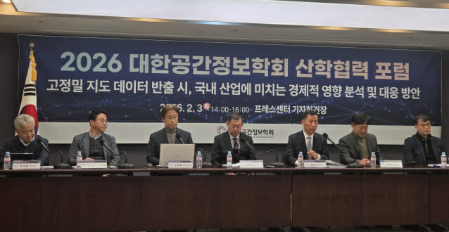 대한공간정보학회는 3일 서울 중구에서 ‘2026 대한공간정보학회 산학협력 포럼’을 개최하고 고정밀 지도 해외 반출 시 국내 산업에 미치는 경제적 영향과 대응 방안을 논의했다.