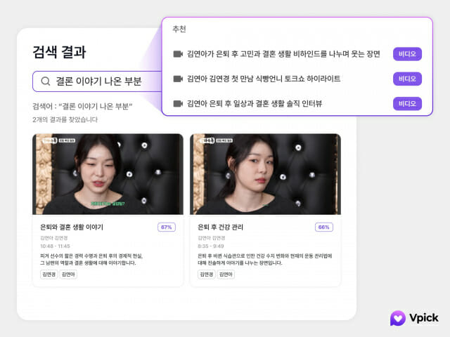 브이픽은 인터뷰, 회의, 강의, 토크 영상처럼 맥락과 발언이 중요한 영상을 ‘재생해야만 이해할 수 있는 파일’이 아니라 ‘내용으로 검색하고 판단할 수 있는 자료’로 바꾼다.