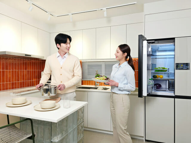 주방에는 ‘비스포크 AI 하이브리드 4도어 키친핏 맥스’ 냉장고를 비롯해 인덕션, 정수기, 오븐, 후드 등 다양한 주방 가전을 배치했다. 기기들은 서로 연동돼 식재료 관리와 조리 과정의 편의성을 높였다. 냉장고는 내부 식재료를 인식해 자동으로 목록을 만드는 ‘AI 푸드매니저’, 음성 명령으로 문을 여는 ‘오토 오픈 도어’ 등을 지원한다.