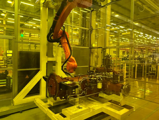 2공장은 트랙터 미션 조립라인이다. 사람 손이 중심이 되는 공정이지만 이곳에서도 변화의 흐름이 보였다.