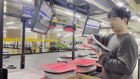 현장은 바코드 스캔으로 시작한다. 상품이 투입되면 주문 정보와 즉시 연동되고, 시스템은 해당 상품이 어느 매장으로 가야 하는지 자동으로 판단한다. 분배가 완료된 상품은 최종 검수를 거쳐 송장이 출력되고, 컨베이어를 따라 외부 출고장으로 이동한다.