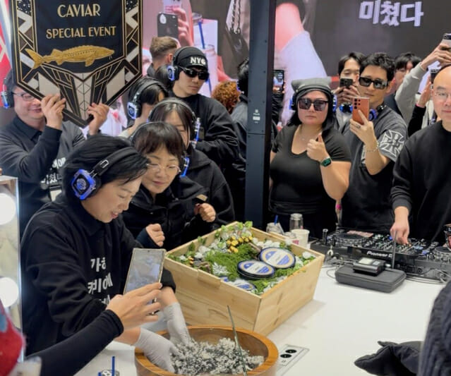 현장에서는 고가의 벨루가 캐비아 한 통이 통째로 들어간 주먹밥과 캐비아를 올린 디저트를 방문객과 나누는 퍼포먼스도 펼쳐진다.