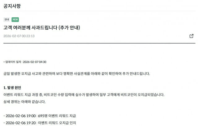이어 “이번 사태를 엄중히 받아들이며 자산 지급 프로세스 전반을 재설계하고 내부통제 시스템을 고도화해 재발 방지에 총력을 기울이겠다”고 덧붙였다.