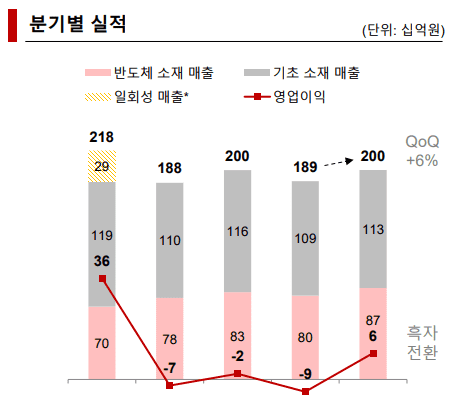4분기 매출은 유가 하락에 따른 카본케미칼 가격 하락으로 전분기 대비 소폭 감소했다. 반면 영업이익은 반도체용 폴리실리콘을 비롯한 반도체 소재 전반의 판매량 증가에 따라 전 분기 대비 큰 폭으로 늘어나면서 흑자 전환했다.