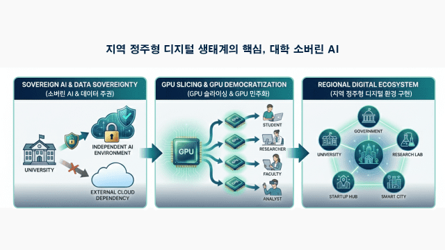 틸론은 이제 단순 가상화 솔루션 제공을 넘어 데이터 주권 기반의 AI 교육·연구 플랫폼 구축으로 나아가고 있다. 지방 거점 국립대학교의 ‘소버린 AI(Sovereign AI)’ 기반 AI 교육·연구 플랫폼 구축 사업은 대학 내 AI 교육·연구 플랫폼 구축의 표준을 제시한다.