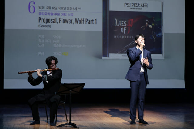 ‘P의 거짓’ 파트에서는 트레일러 영상과 함께 ‘Overture’가 연주됐다. 복잡한 오케스트라 사운드 위에 국악기가 자연스럽게 얹히는 구조를 구현하기 위해, 메인과 배경의 역할 분배에 특히 공을 들였다고 말해 눈길을 끌었다.