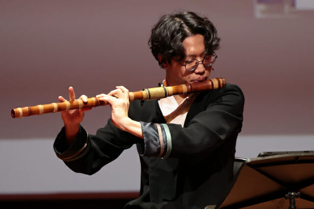 첫 곡은 ‘나 혼자만 레벨업 어라이즈’의 OST ‘ARISE’였다. 원곡은 케이팝 아이돌과 협업한 강렬한 전자 사운드 기반의 곡이지만, 이날 무대에서는 거문고가 신스 베이스를 대신하고 대금과 피리가 선율을 이끄는 실내악 편성으로 탈바꿈했다.