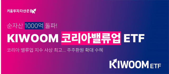 키움투자자산운용은 ‘키움(KIWOOM) 코리아밸류업 ETF’의 순자산이 지난 12일 기준 1000억원을 돌파했다고 19일 밝혔다.