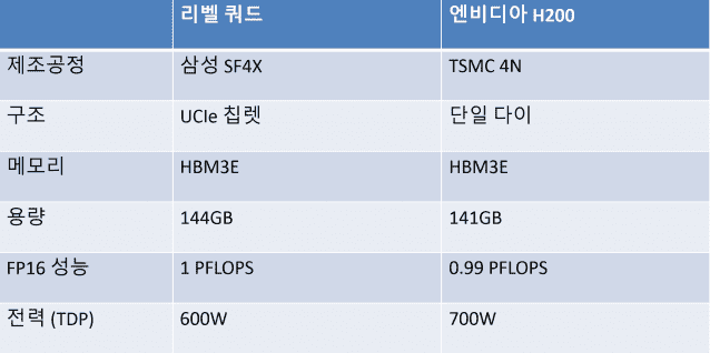 가장 고무적인 대목은 전력 효율이다. 리벨 쿼드의 설계 전력(TDP)은 최대 600W로, 유사한 성능을 내는 H200(700W) 대비 약 15% 가량 전력 소모가 적다.