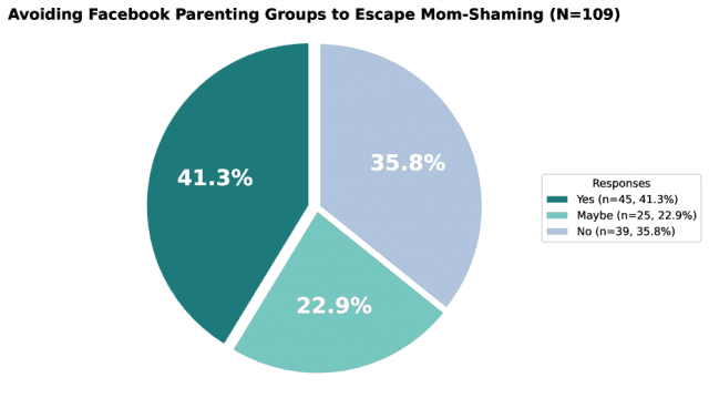 방글라데시 치타공 공과대학교(Chittagong University of Engineering and Technology)와 방글라데시 전문가 대학교(Bangladesh University of Professionals) 연구진이 2026년 2월 발표한 논문에 따르면, 남아시아 엄마 109명을 대상으로 설문한 결과 41.3%가 '맘-셰이밍(mom-shaming)', 즉 엄마로서 비난받는 것이 두려워 페이스북 육아 그룹에 질문 올리기를 적극적으로 피한다고 답했다. 추가로 22.9%는 "상황에 따라 피한다"고 응답해, 사실상 응답자의 64%가 페이스북 육아 커뮤니티를 꺼린다는 결과가 나왔다.
