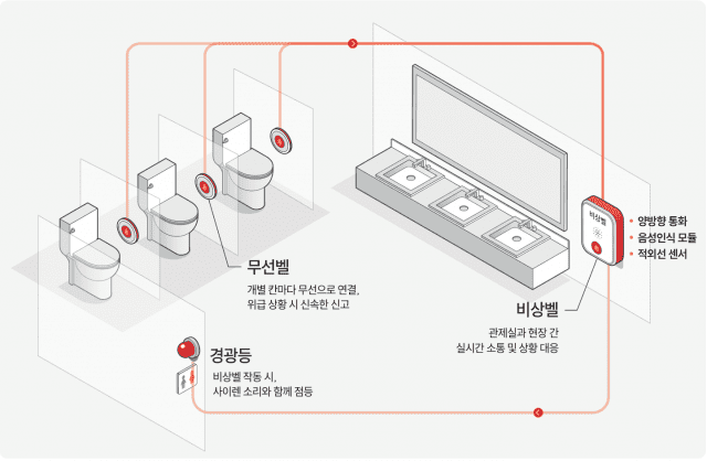 공중화장실 비상벨은 그간 설치·연계·운영 전반에서 실효성 논란이 이어지고 있다. 일부 비상벨의 경우 경찰과 직접 연동되지 않고 알람만 울리는 데 그치는 등 비상벨이 제 역할을 제대로 하지 못하고 있다는 문제가 부상한 것이다.