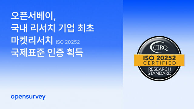 오픈서베이가 국내 리서치 기업 최초로 마켓리서치 분야 전용 국제표준인 'ISO 20252' 인증을 획득했다. 오픈서베이의 연구 프로세스 관리 시스템이 다양한 산업 분야와 고객 과제에 유연하게 대응할 수 있는 우수한 설계와 기능성을 인정받아 이번 인증을 획득했다.