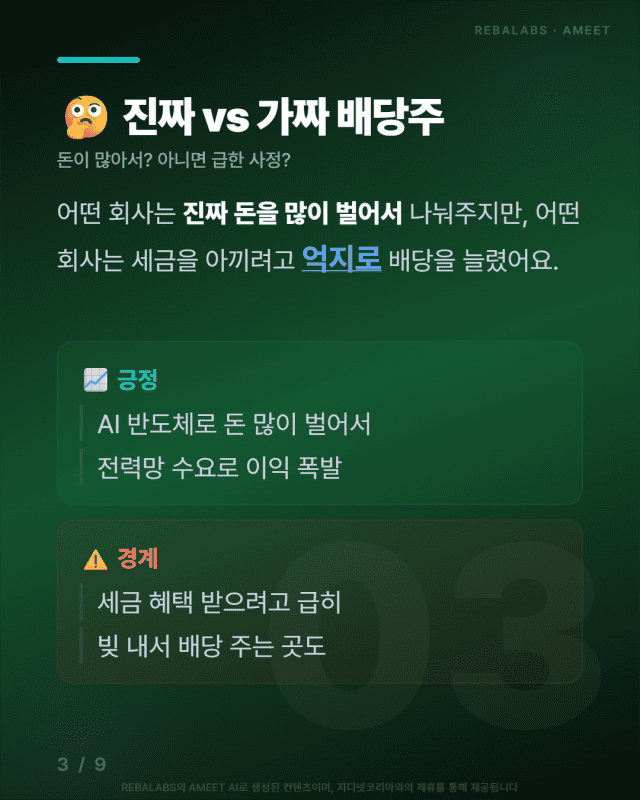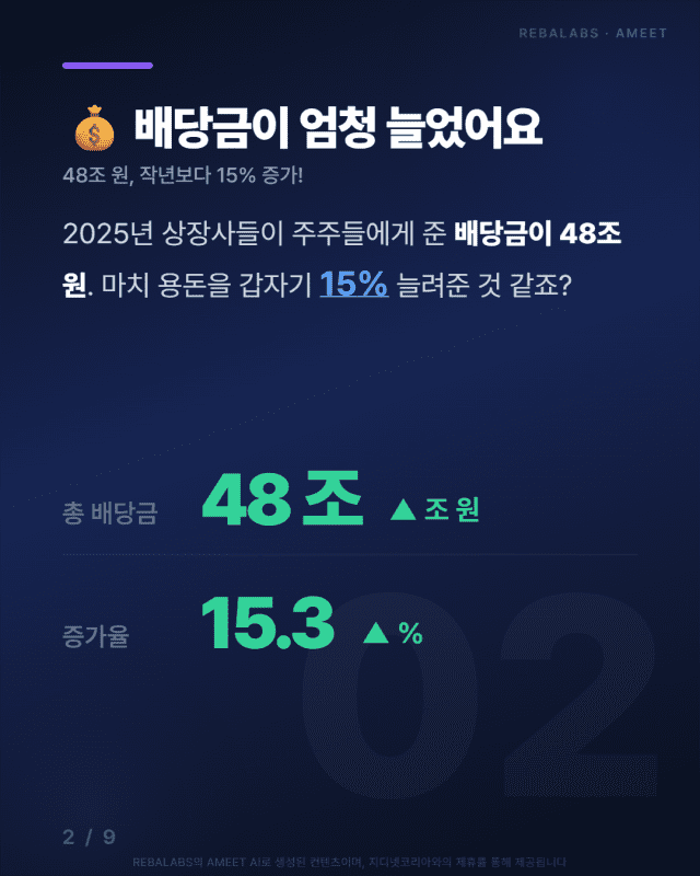 올해 상장사들이 주주들에게 지급한 배당금이 무려 48조 원에 달했어요. 작년보다 15% 넘게 늘어난 수치인데요, 겉으로 보면 정말 반가운 소식 같죠? 하지만 여기엔 함정이 숨어 있어요. 모든 배당이 '진짜 실력'으로 나온 건 아니거든요. 어떤 회사는 정말 사업을 잘해서 돈을 많이 벌어 나눠주지만, 어떤 곳은 세금을 아끼려고 억지로 배당을 늘린 경우도 있어요. 그렇다면 우리는 어떻게 '진짜 배당주'를 찾을 수 있을까요?
