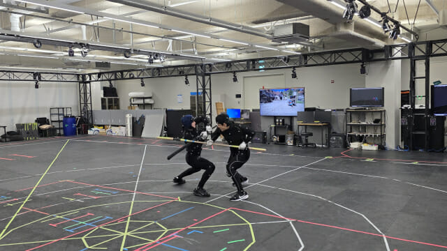 스튜디오 중앙에서는 특수 마커를 부착한 액터들이 서로 합을 맞추며 생동감 넘치는 연기를 선보였다. 특히 봉과 양손검을 활용해 실제 겨루기 합을 보여주는 시연은 게임 속 전투의 현실감을 생생하게 전달했다.