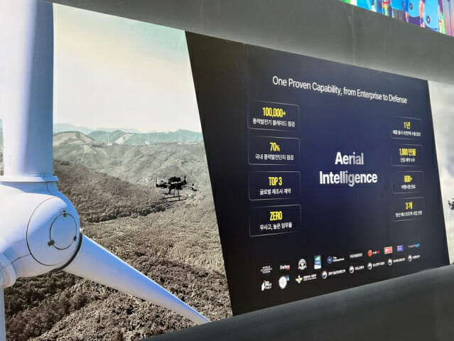 이번 전시 핵심 키워드는 니어스랩 기술 근간인 '에어리얼 인텔리전스'다. 조종자의 지속적인 개입 없이도 드론이 스스로 주변 환경을 인식하고 비행 경로를 수정하며 임무를 수행하는 공중 기반 피지컬 AI 기술이다. 회사는 풍력발전기 블레이드 점검 등 거친 산업 현장에서 축적한 대규모 자율비행 데이터를 바탕으로 기술을 고도화해왔다.