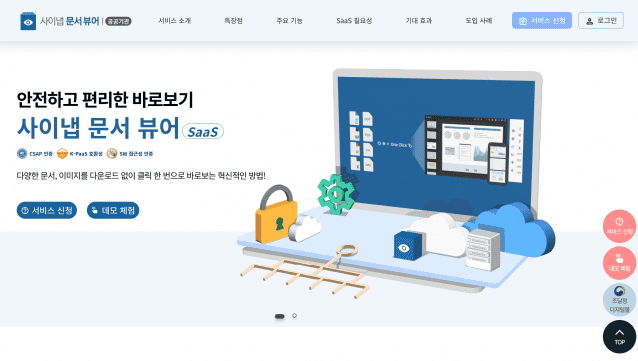 앞서 경북 청송군은 전국 지자체 최초로 사이냅 문서뷰어 SaaS를 도입한 바 있다. 청송군은 SaaS 방식으로 유지보수 효율성을 높이고 군민 대상 안전한 문서 열람 서비스를 구현해 스마트 행정 기반을 마련했다.