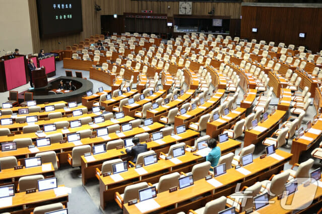 국회는 25일 본회의에서 3차 상법 개정안에 대한 무제한 토론을 종결한 뒤, 국민의힘 의원들의 불참 속에 재석 176명 중 찬성 175명으로 상법 개정안을 통과시켰다.