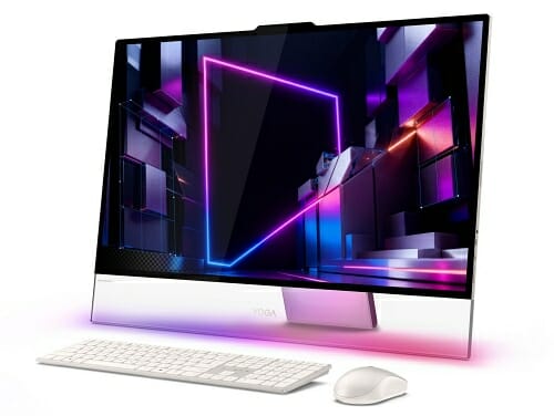 요가 AIO i 아우라 에디션은 31.5인치 OLED 디스플레이 기반 일체형 PC로 화면 테두리를 최소한으로 줄여 몰입감을 높였다. 최대 화면주사율은 165Hz이며 주변 환경에 맞춰 디스플레이 밝기를 조절하는 어댑티브 라이팅 기능을 내장했다.