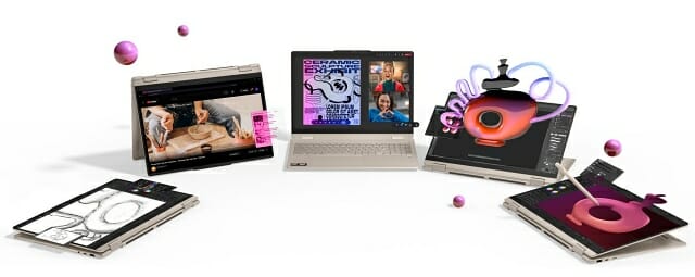 요가 7a 투인원은 AMD 라이젠 AI 400 프로세서와 360도 회전하는 14인치 2.8K 퓨어사이트 프로 OLED 디스플레이로 구성됐다. 용도에 따라 노트북, 태블릿, 텐트, 디스플레이, 캔버스 모드를 오간다.