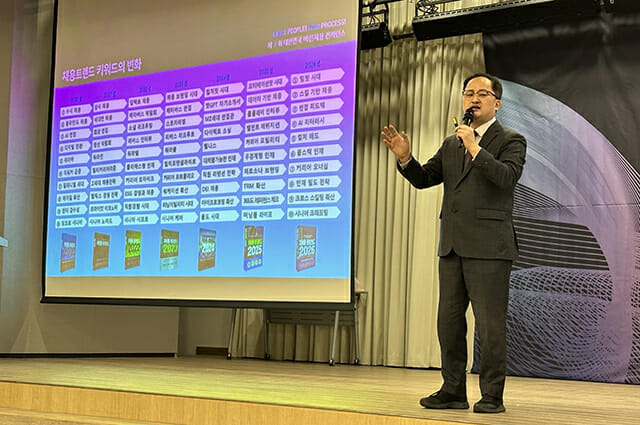 한성주 SK AX교육사업2팀 매니저는 '생성형 AI 활용 역량을 어떻게 키우고 평가할 것인지에 대한 기준'을 공유했고, 정준호 LG이노텍 인재역량확보팀 팀장은 '애자일 채용 전략과 AI 시대 인재 확보 방안'을 발표했다.