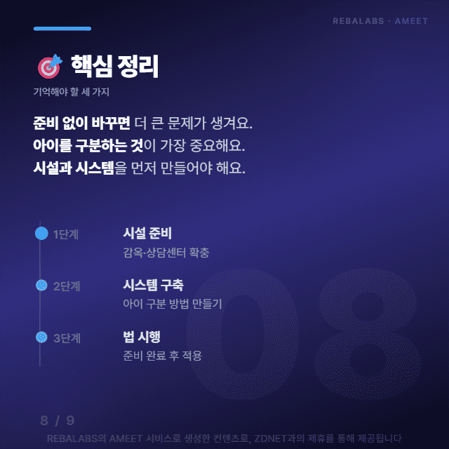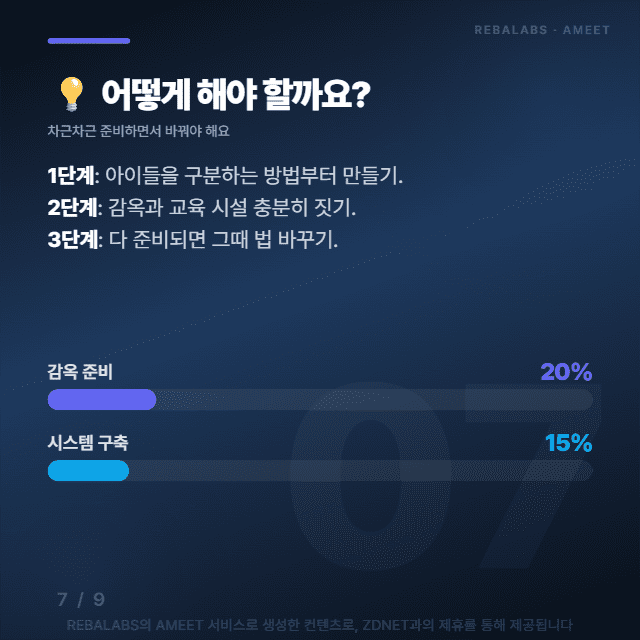 감옥이나 교육 시설도 부족하고요. 그래서 1단계로 아이들을 구분하는 방법부터 만들고, 2단계로 시설을 충분히 준비한 다음, 3단계에서 법을 바꾸는 게 맞다는 거예요. 준비 없이 성급하게 법만 바꾸면 오히려 더 큰 문제가 생길 수 있어요. 아이의 미래는 우리 모두의 책임이니까요.