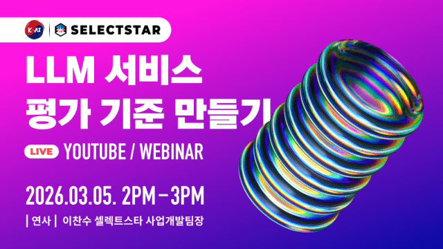 이찬수 셀렉트스타 사업개발팀장은 "많은 기업이 LLM을 도입하면서도 정작 서비스 목적에 맞는 명확한 평가 기준을 세우는 데 어려움을 겪는다"며 "이번 웨비나를 통해 데이터 기반으로 AI 서비스 출시 여부를 판단할 수 있는 지표를 마련하길 기대한다"고 말했다.