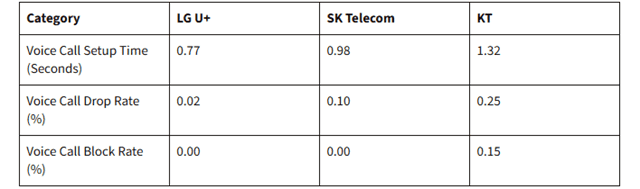 LG유플러스는 0.77초의 통화 연결 속도를 기록하며 SK텔레콤 0.98초, KT 1.32초에 비해 빠른 속도를 기록했다.