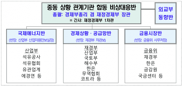 중동 현지 상황과 국내외 금융시장, 에너지·수출·해운·항공·공급망 등 실물경제 영향을 24시간 모니터링하면서, 이상징후 발생 시 준비된 상황별 대응계획 따라 관계기관 간 공조 하에 신속하게 대응해 나간다는 계획이다.
