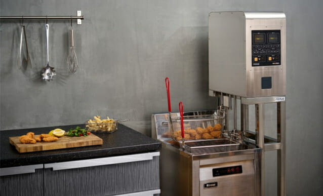 로보슨 주력 제품인 프라이닉은 기존 튀김기 측면이나 상단에 장착하는 자동 튀김 제어 시스템이다. 고온의 기름 앞에서 조리사가 직접 수행하던 바스켓 흔들기와 털기 작업을 자동화해 안전성과 작업 효율을 동시에 높인다.
