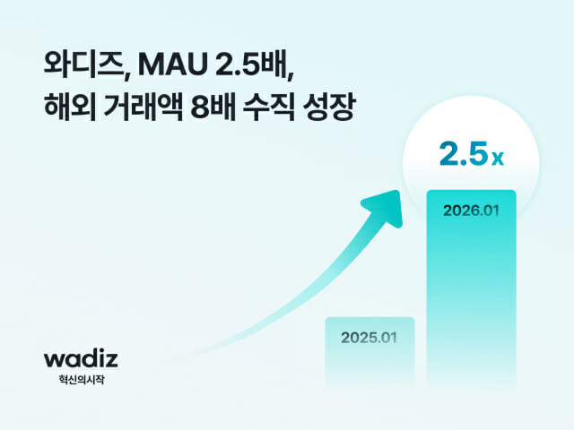 와디즈(대표 신혜성)는 올해 1월 월간 활성 사용자 수(MAU)가 전년 동기 대비 2.5배 증가하고 해외 거래액이 8배 이상 성장했다고 5일 밝혔다.