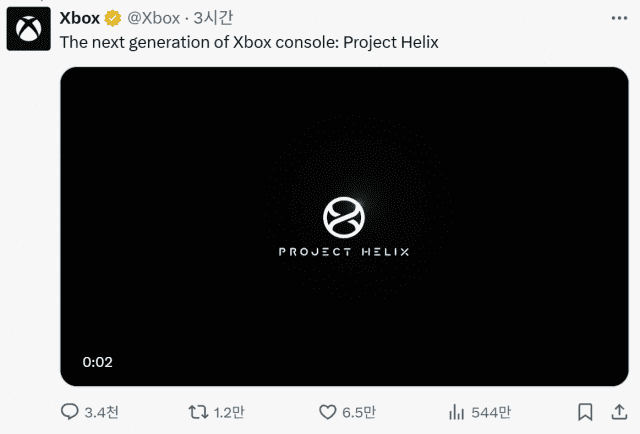 해당 게시물은 현재 아샤 샤르마 X 계정에서 삭제된 상태지만, 엑스박스 공식 X 계정도 '프로젝트 헬릭스'의 이름과 로고를 공유하며 차세대 콘솔 개발 소식을 전했다.