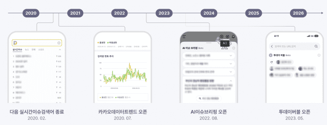 다음은 실시간 트렌드가 단순한 실검 복원이 아니라 그동안 운영했던 여러 대안 서비스의 경험을 반영한 결과라고 설명했다. 실검 종료 이후 ‘카카오 데이터 트렌드’, ‘AI 이슈 브리핑’, ‘투데이 버블’ 등 다양한 실험을 거쳤고, 이를 통해 이용자들이 여전히 “지금 당장의 중요한 이슈”를 빠르게 파악할 수 있는 기능을 원한다는 점을 확인했다는 설명이다.