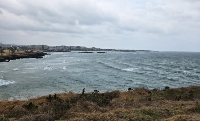 서우봉 초입에 들어서면 아래 위치한 바다에서 거센 바람이 불어오는 것을 느낄 수 있었다. 전날 비가 온 탓에 날씨가 흐려 어두운색으로 보였지만, 햇빛을 받을 때는 에메랄드빛에 가까운 푸른색을 띄는 바다를 볼 수 있었다.