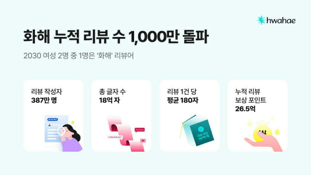 화해글로벌(각자대표 이웅·김경일)이 운영하는 뷰티 플랫폼 화해가 누적 리뷰 1000만 건 돌파를 기념해 ‘천만리뷰 천만결산’ 콘텐츠를 공개하고, 이용자 감사 이벤트를 진행한다고 9일 밝혔다.