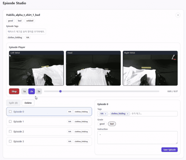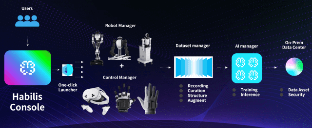 이 중 하빌리스 콘솔은 로봇 제어, 데이터 수집, 데이터 증강, 학습, 추론, 시각화를 하나의 사용자 친화적 인터페이스로 묶은 엔드투엔드 머신러닝운영(MLOps) 파이프라인 플랫폼이다.